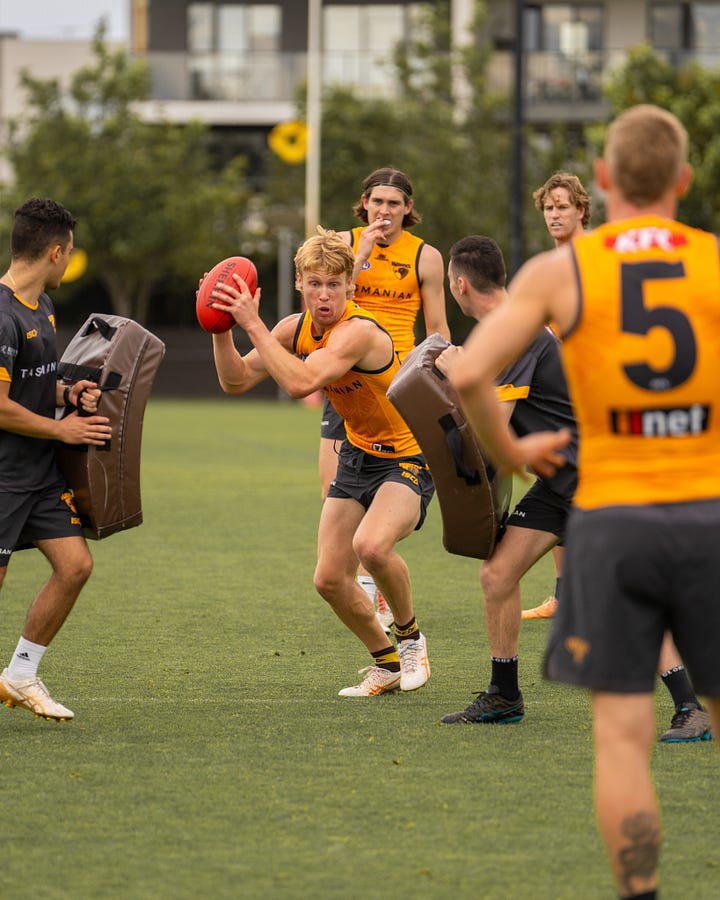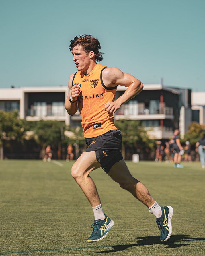 But at the Hawks there are options to cover for him. Jai Newcombe, James Worpel and Conor Nash is a reasonable starting trio at the feet of Ned Reeves, Lloyd Meek and Mabior Chol. Josh Ward has been trained hard this summer — like Day 12 months ago — to join them and is reportedly flying. The midfield is Cam Mackenzie’s natural home and he showed plenty there last year.
