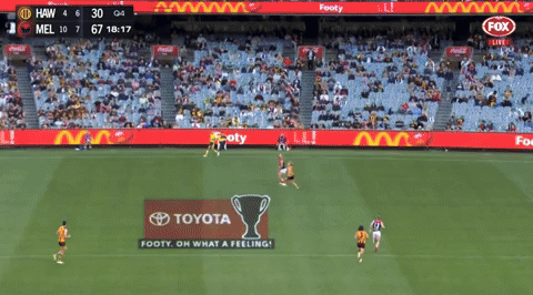 What a passage of play and full credit goes to Cam Mackenzie who had a decent game against the Demons. Needing to at least half a contest where Max Gawn was odds on to take a mark, Mackenzie did so much more than that. He won possession of the footy, remained calm as he assessed his options ahead and then put a perfect pass in to Mitch Lewis who went on to kick a great goal at the start of the fourth term. Brilliant individual effort.