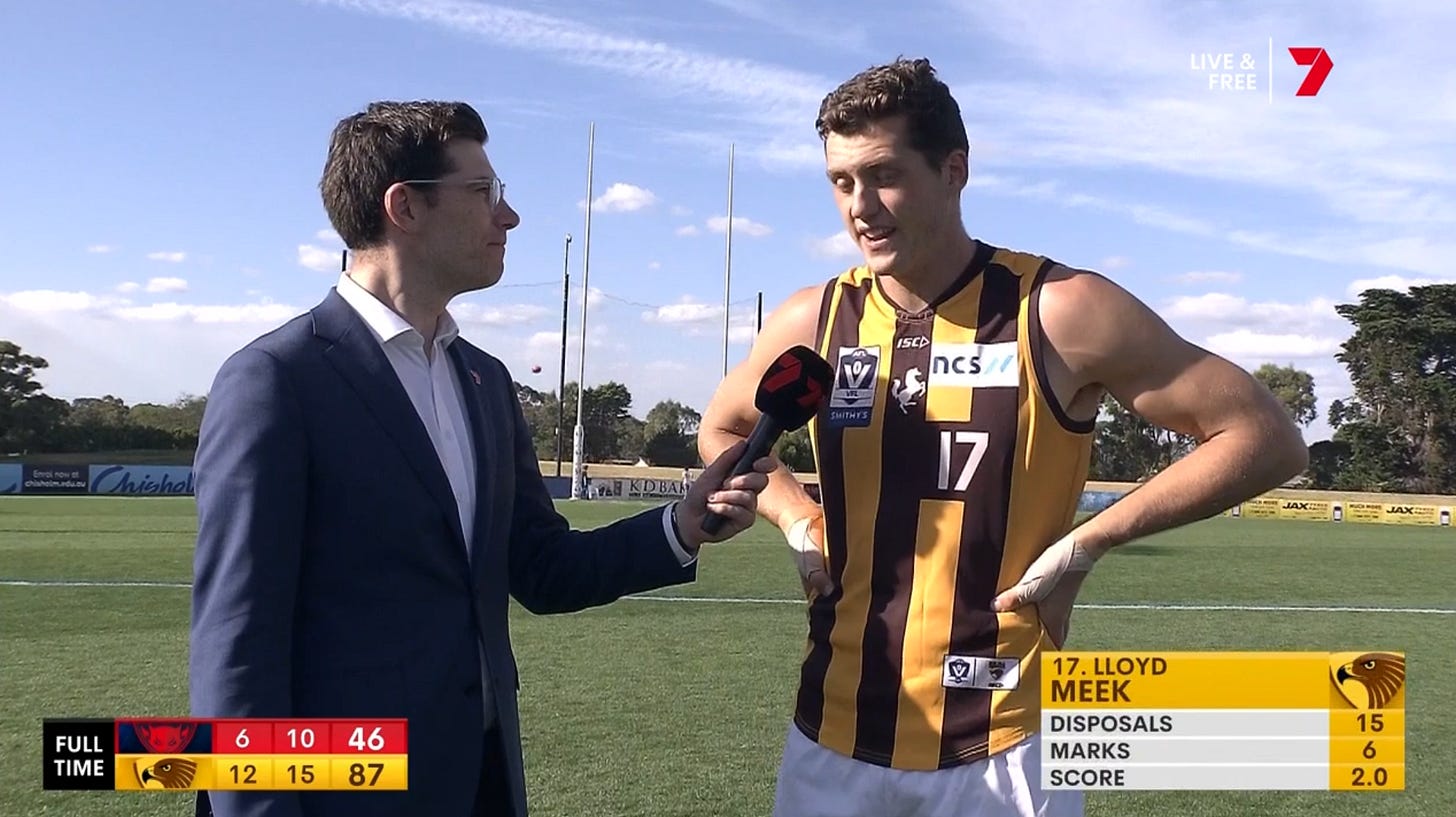 Ned Reeves won the hitouts and arguably curtailed some of Gawn’s influence, but his lack of impact around the ground — he’s taken two marks in the opening two rounds — could pave the way for Lloyd Meek. Meek was one of the best for Box Hill with 26 hitouts, six marks, 15 disposals, and two goals.